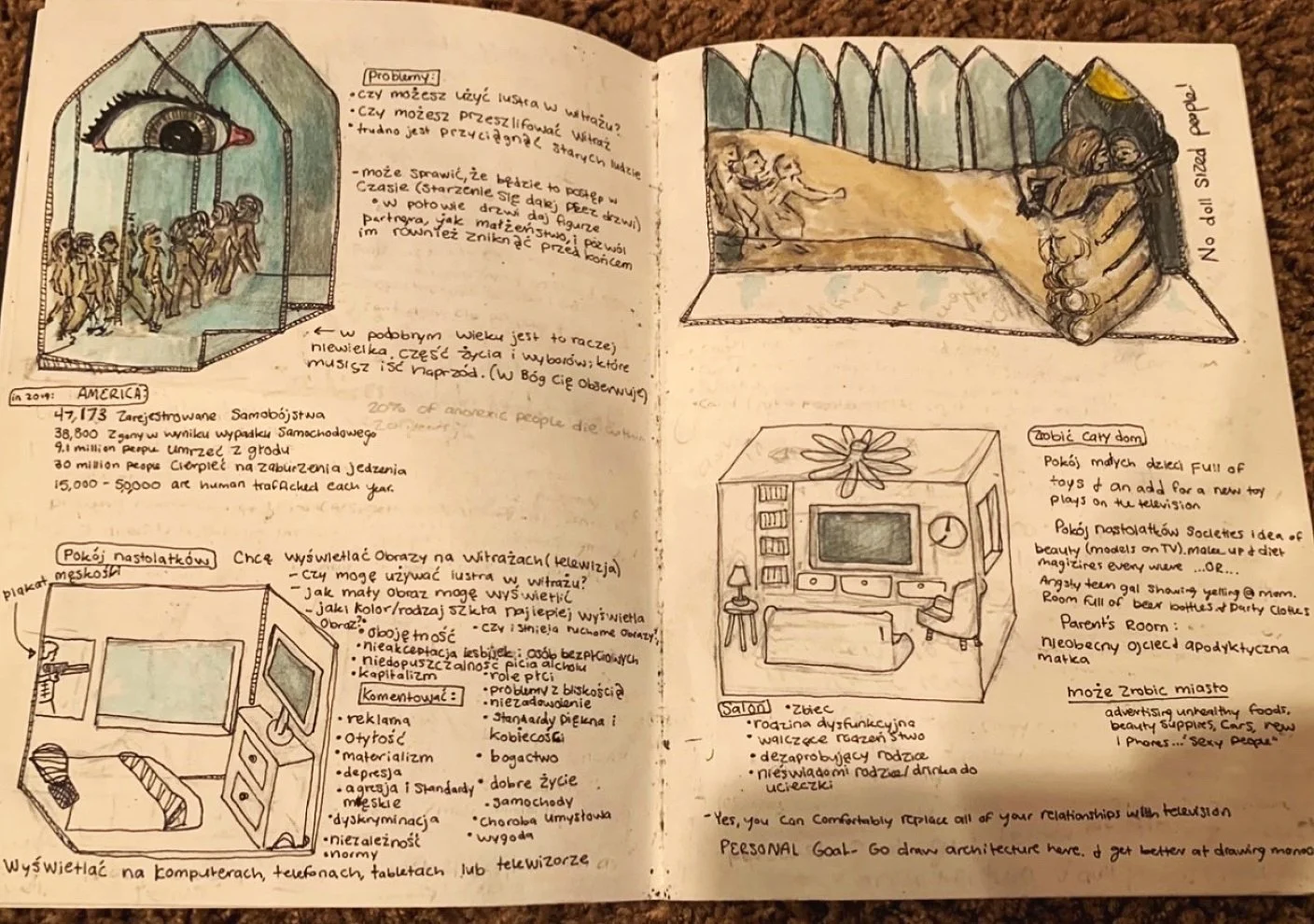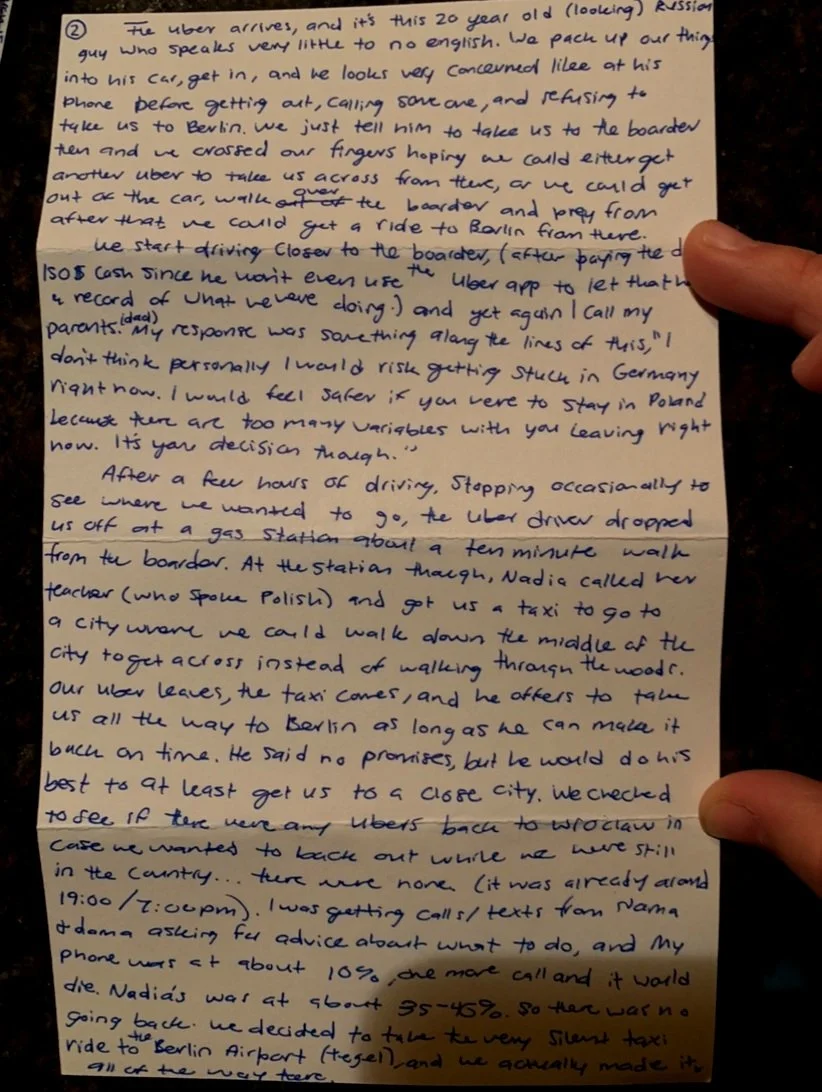 When I was in Poland, I wrote a diary entry almost every day in the form of letters. I used many of my sketches and experiences in writing these letters. Once I got home, I put all of my letters in sealed envelopes and binded them into a book. Along with this book of letters, I also made an artist book with a compilation of the photos that I took when I was in Poland.