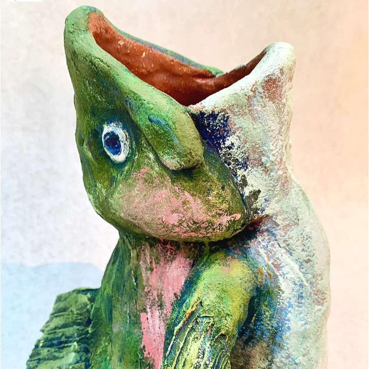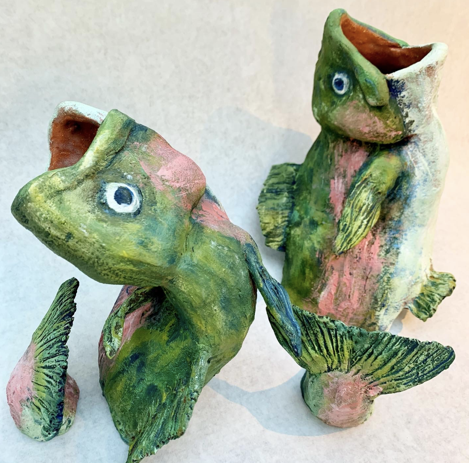 I have enjoyed making sculptural vases over the years. I see a cylinder-thrown vessel not as the end of a process but as the beginning. From there I love to make bodies and fish and see how much clay can be manipulated in its many forms.