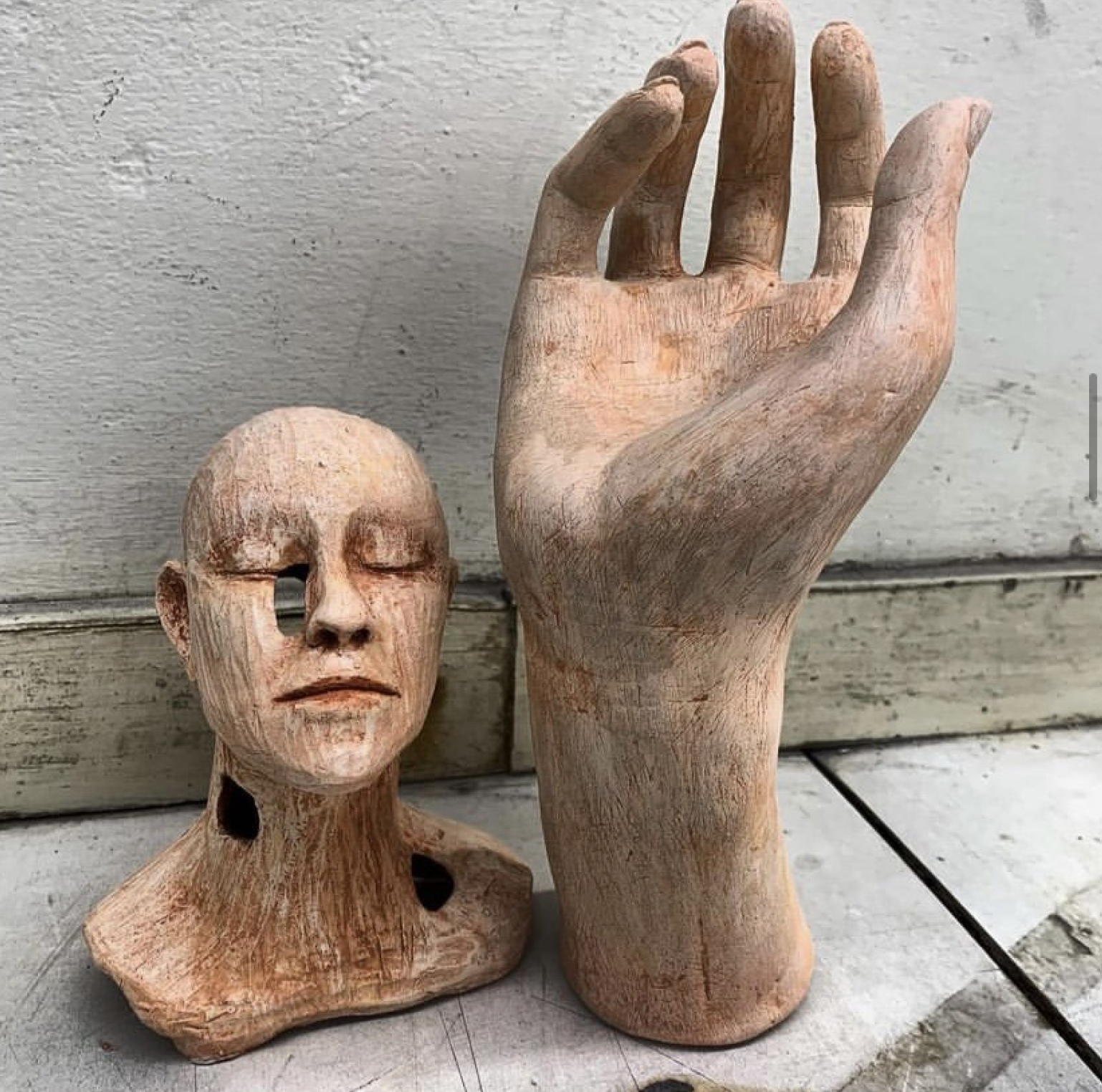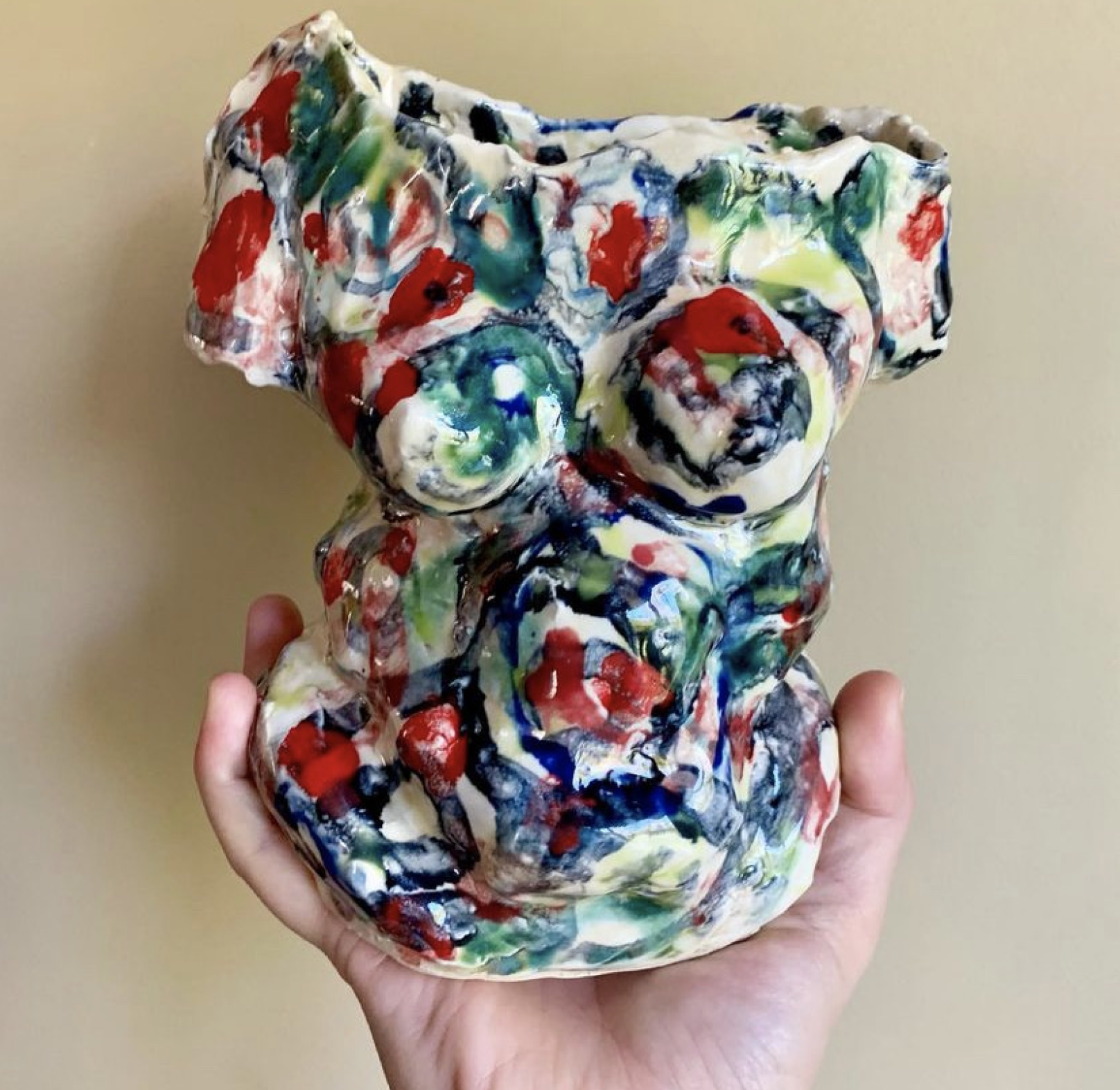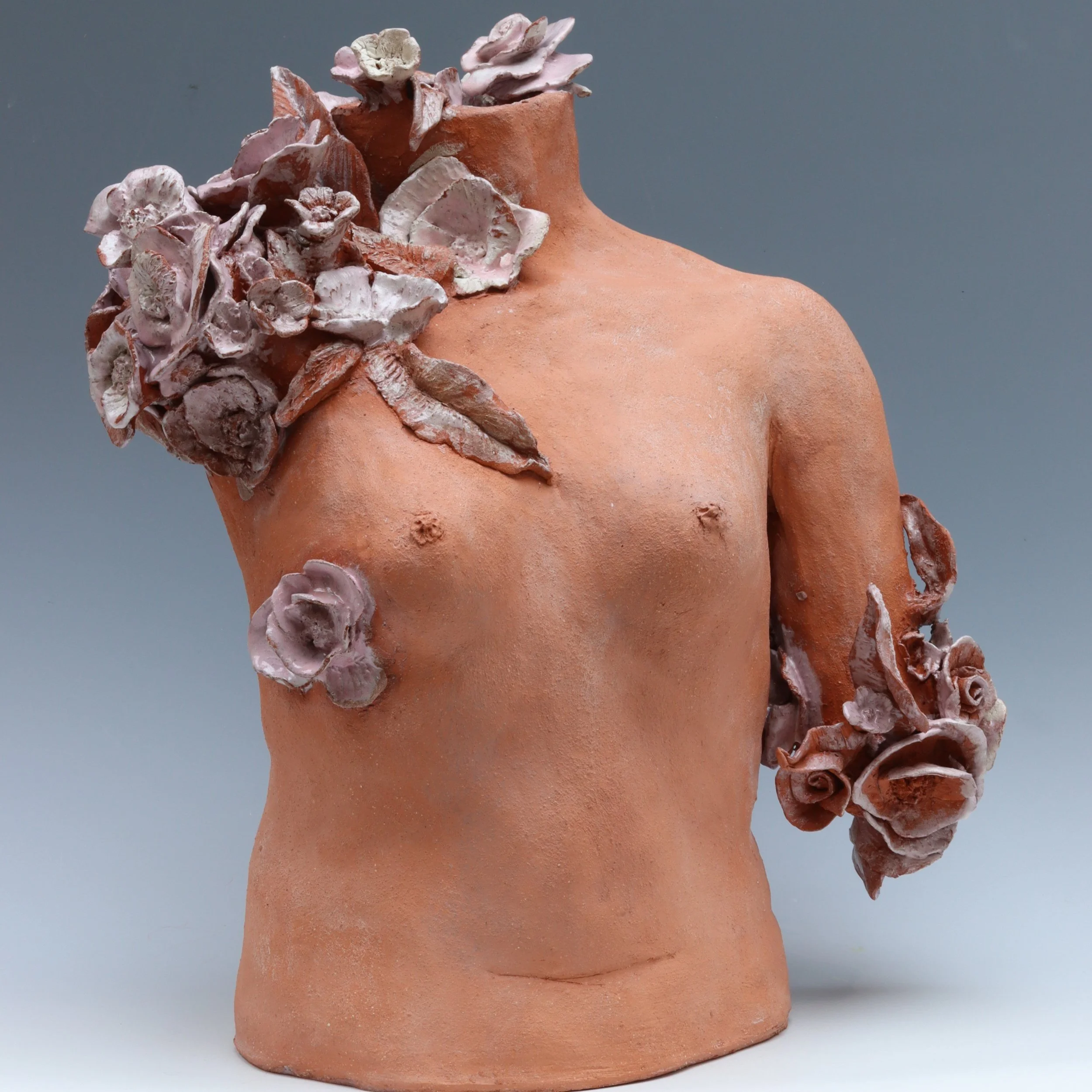 No matter what I do, I have always found myself coming back to the female form. Many of these forms are self-portraits made out of a wheel-thrown vessel or built solid. I enjoy stretching and bending clay so that I can respond to what the clay wants to do as well as making each form my own.