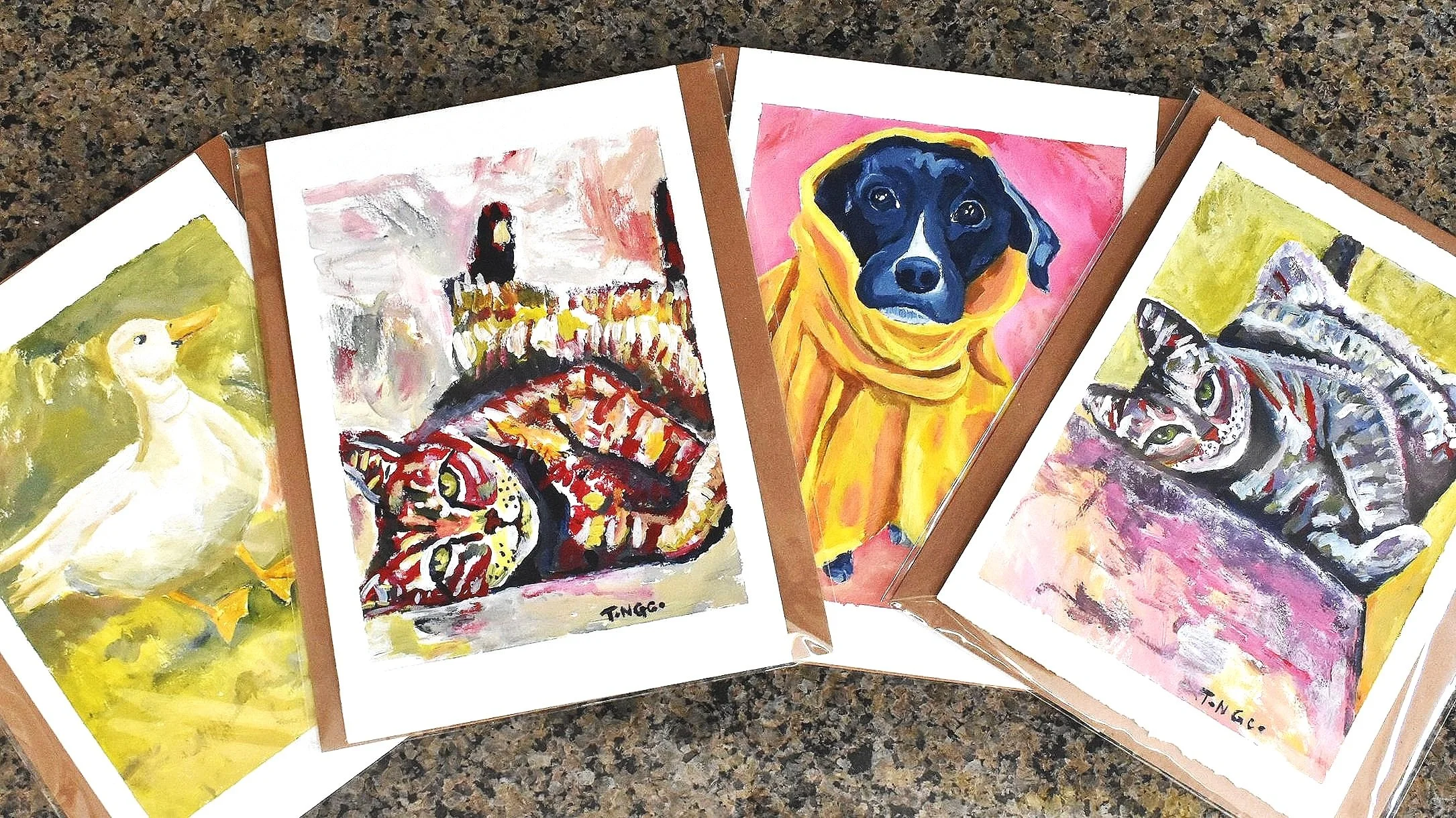 One of my many joys recently has been painting people’s furry friends. Whether this is a dog, cat, duck, or any other beloved pet, I always smile when I work on these animals. These are my favorite commissions to date, and if you have a pet you love, please email or DM me a pic on Instagram @tongcoart.